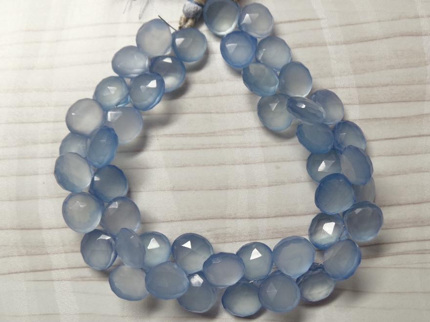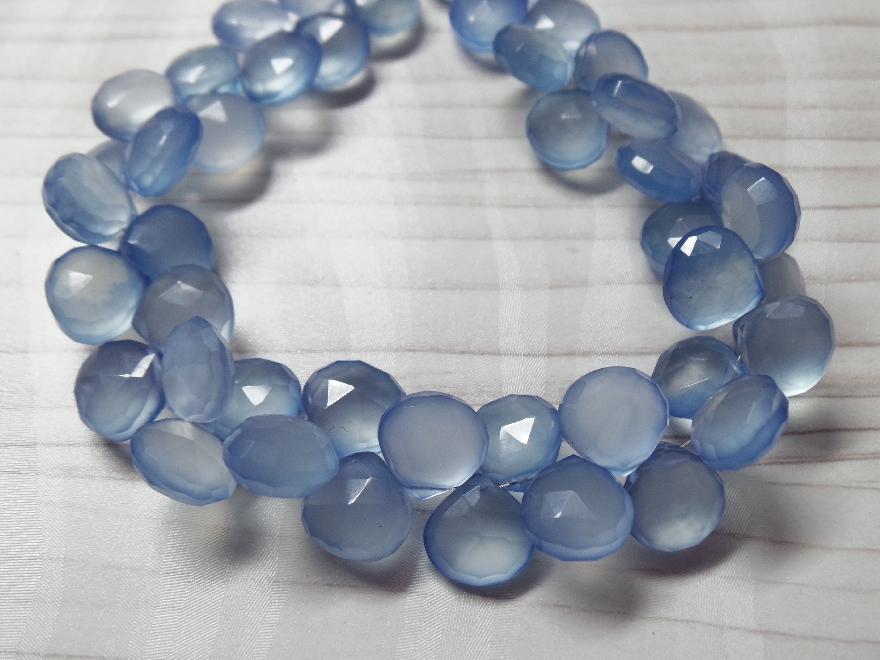 » Exclusive 10 MM Size, High Quality, Full 7 Inches Strand, Blue Chalcedony, Faceted Heart Shape Briolettes
