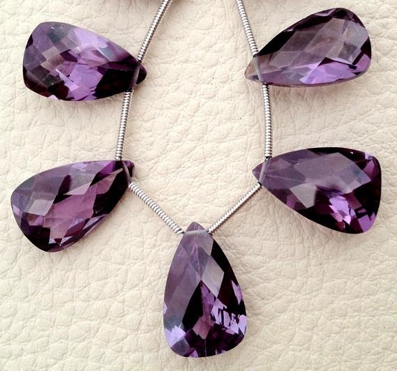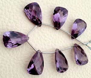 » Exclusive Amazing 14 MM Long Size, Gorgeous AAAAA++++ High Quality, Full 7 Inch Strands, Amethyst Quartz, Faceted Pyramind Cut Briolettes