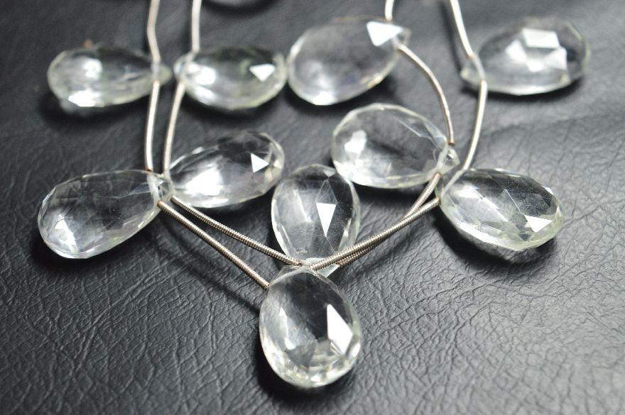 » Natural Rock Crystal, Faceted Pear Briolettes, Awesome Finest Quality, Super Strong Flashy, Available on Wholesale Price