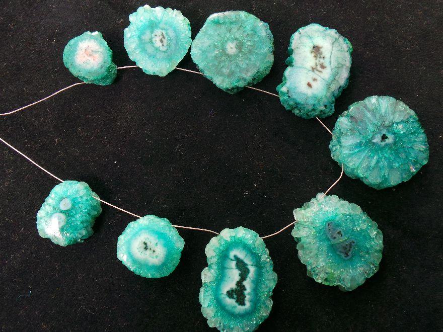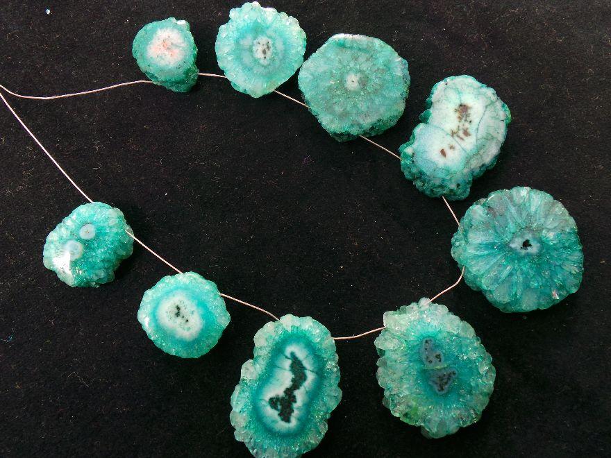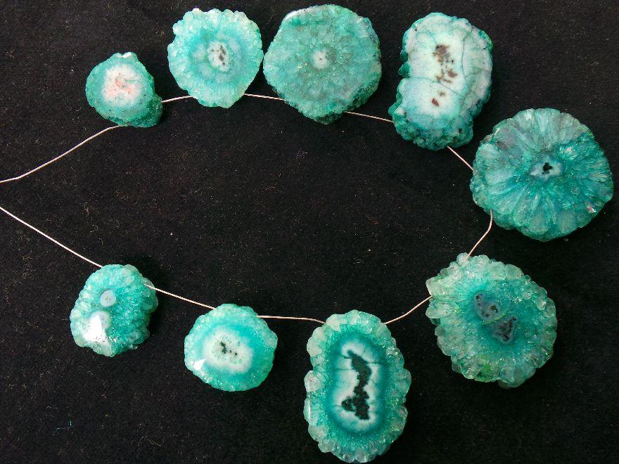 PRODUCT DESCRIPTION: Product Name: Apatite Green Color Stalactite Slices, Top Drill Both Side Polished Briolettes Quality: AAAAA++++ Super Top Quality