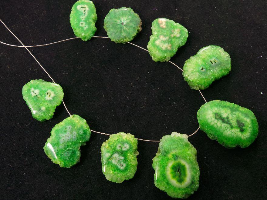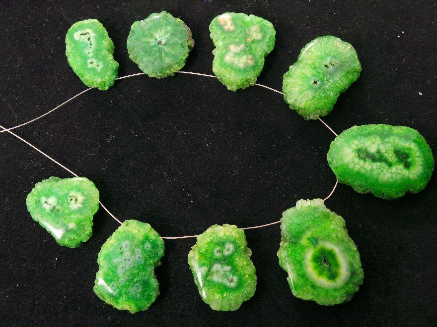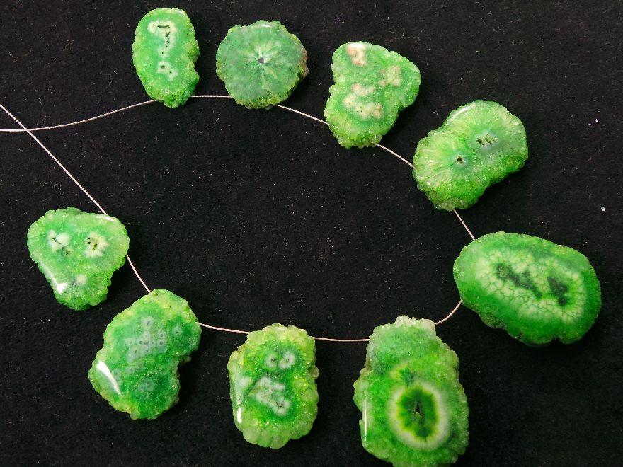 » Peridot Green Color Stalactite Slices, Top Drill Both Side Polished Briolettes, Awesome Finest Quality, Available On Wholesale Price