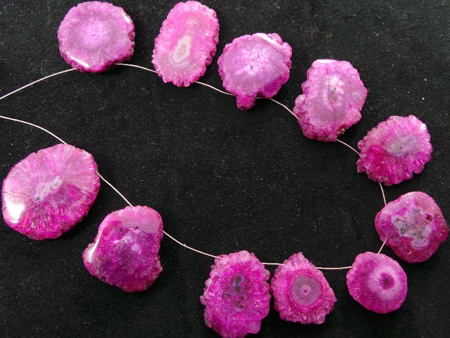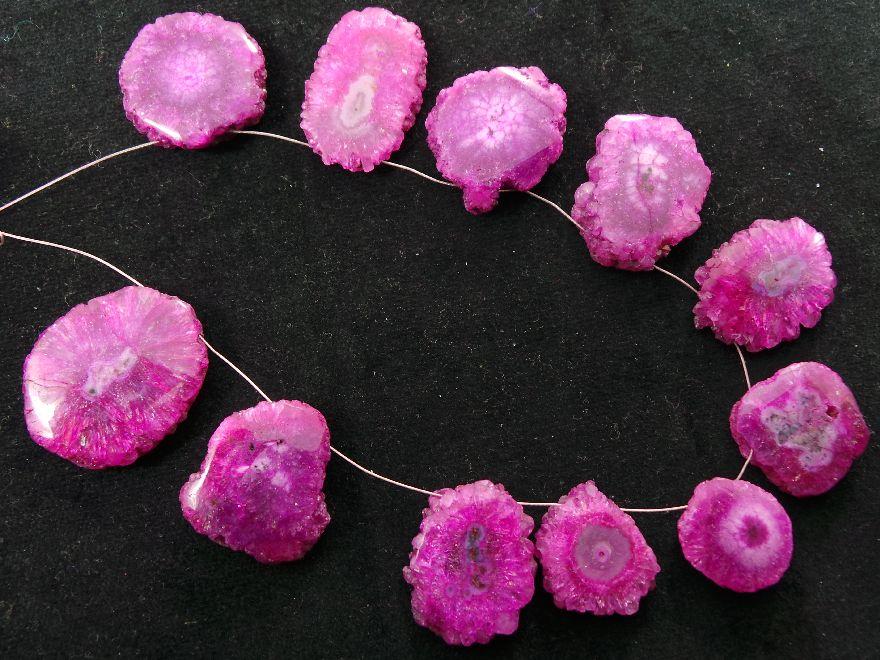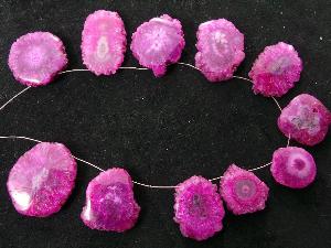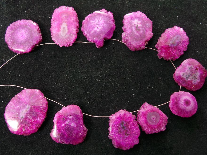 » Hot Pink Color Stalactite Slices, Top Drill Both Side Polished Briolettes, Awesome Finest Quality, Available On Wholesale Price