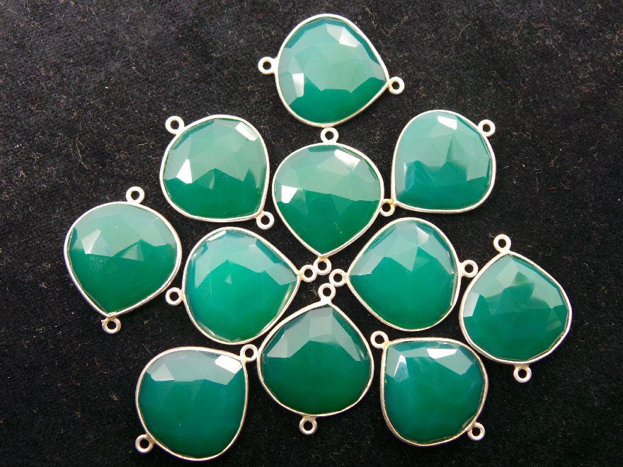 PRODUCT DESCRIPTION: Product Name: Green Onyx Chalcedony, One Side Chacker Cut Connectors Quality: AAAAA++++ Super Top Quality