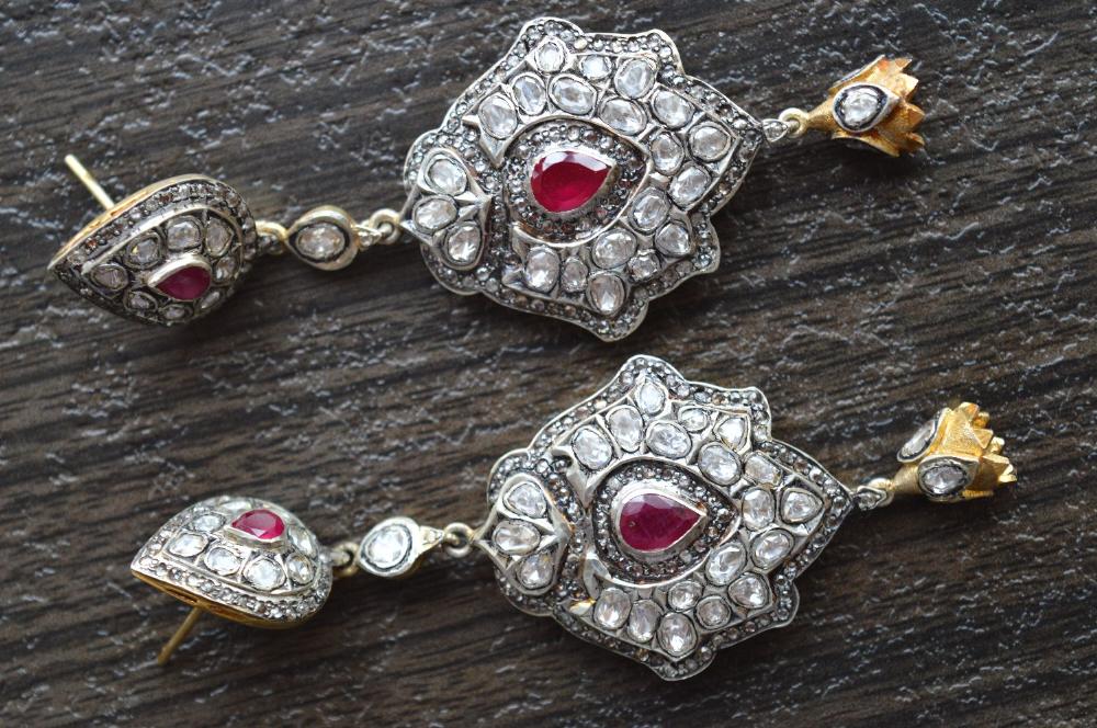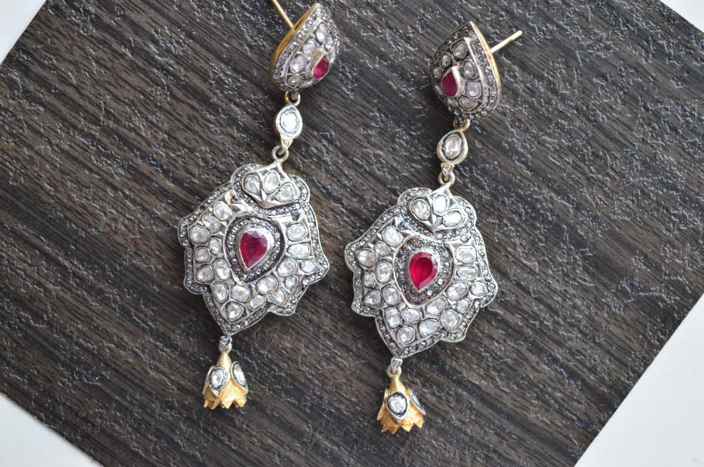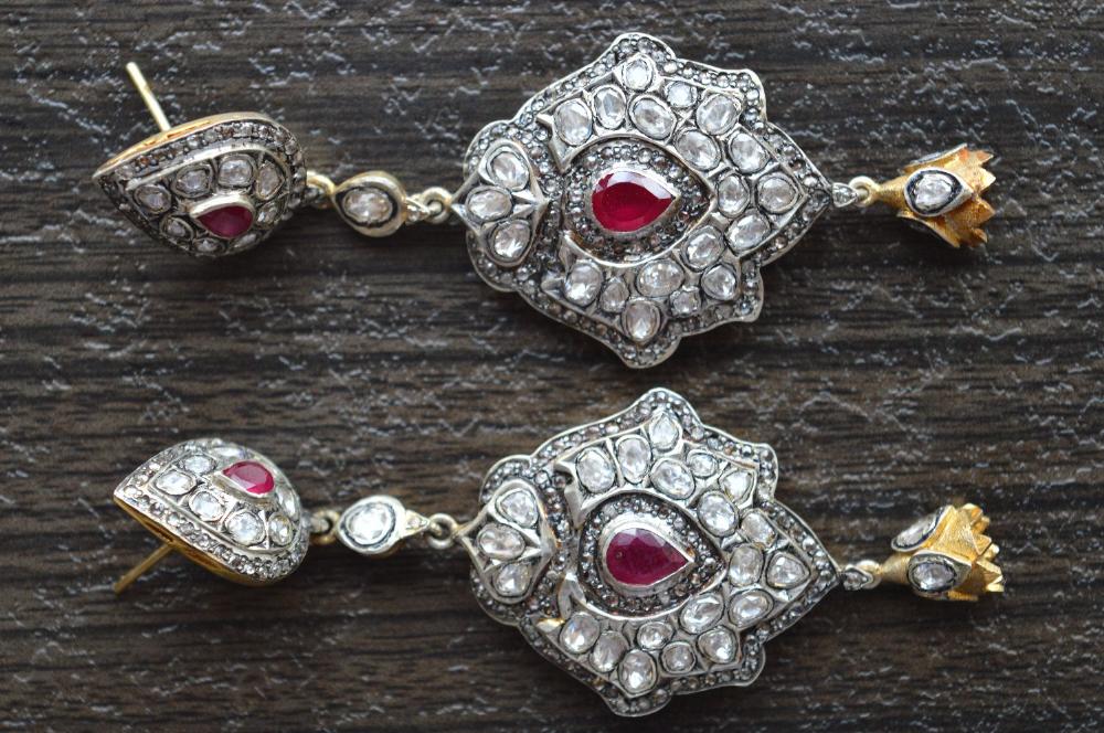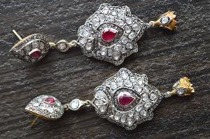 » Victorian Jewellery 925 Sterling Silver, Studded With Polki Moissanite Diamond Ear Rings Sate, Awesome Finest Quality, Available On Wholesale Price