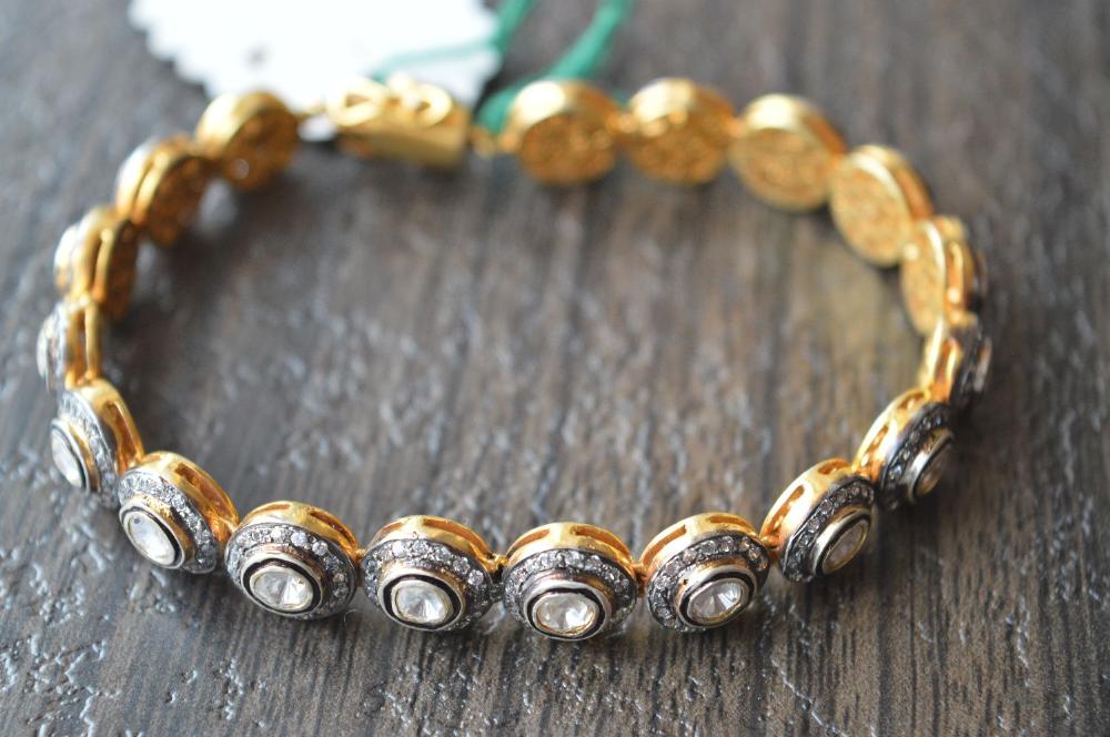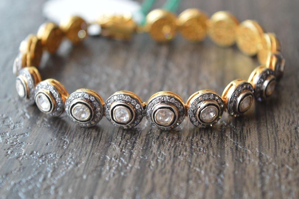 » Victorian Jewellery 925 Sterling Silver, Studded With Polki Moissanite Diamond Bracelet, Awesome Finest Quality, Available On Wholesale Price