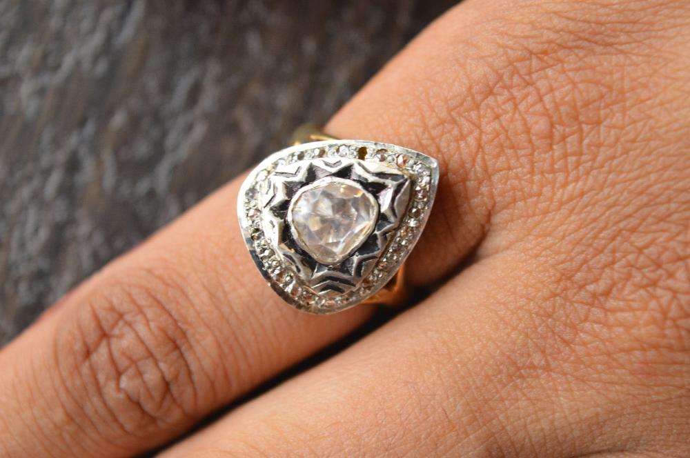 PRODUCT DESCRIPTION: Product Name: Victorian Jewellery 925 Sterling Silver, Studded With Polki Moissanite Diamond Ring Quality: AAAAA++++ Super Top Quality