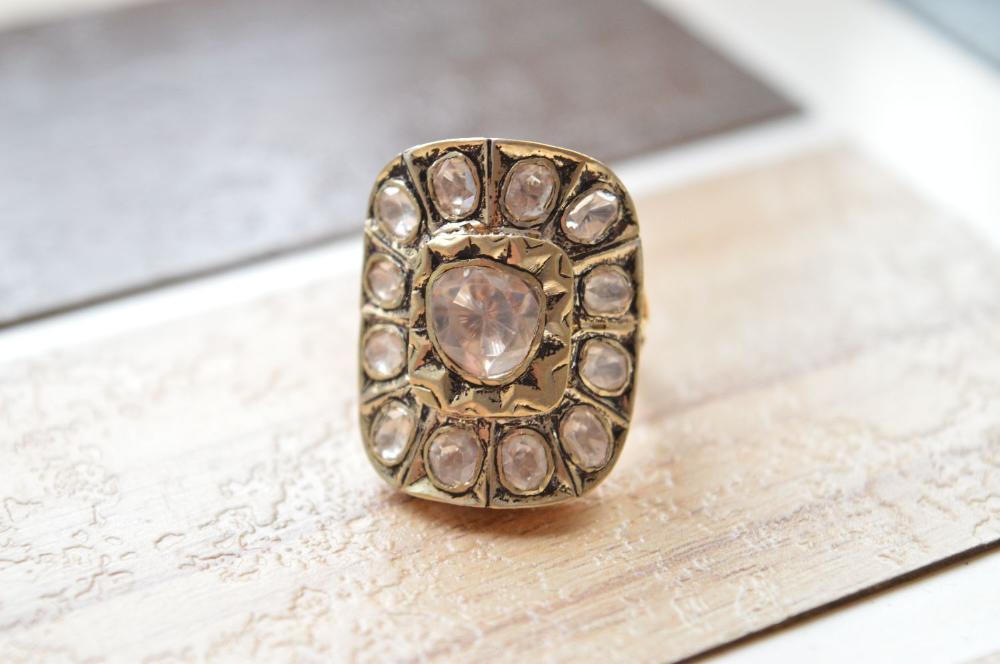PRODUCT DESCRIPTION: Product Name: Victorian Jewellery 925 Sterling Silver, Studded With Polki Moissanite Diamond Ring Quality: AAAAA++++ Super Top Quality