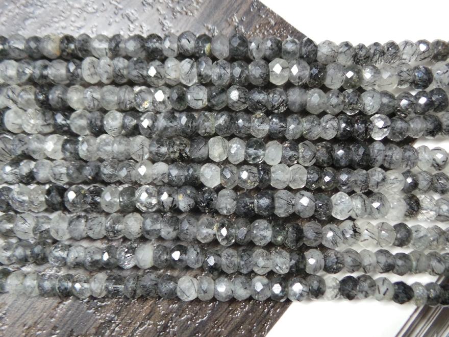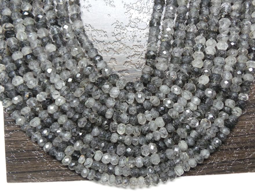 » Exclusive & Rarely Available Full 14" Strand - Pleasing AAAAA++++ High Quality- 6 MM Size Natural BLACK RUTILATED QUARTZ Faceted Roundel Beads