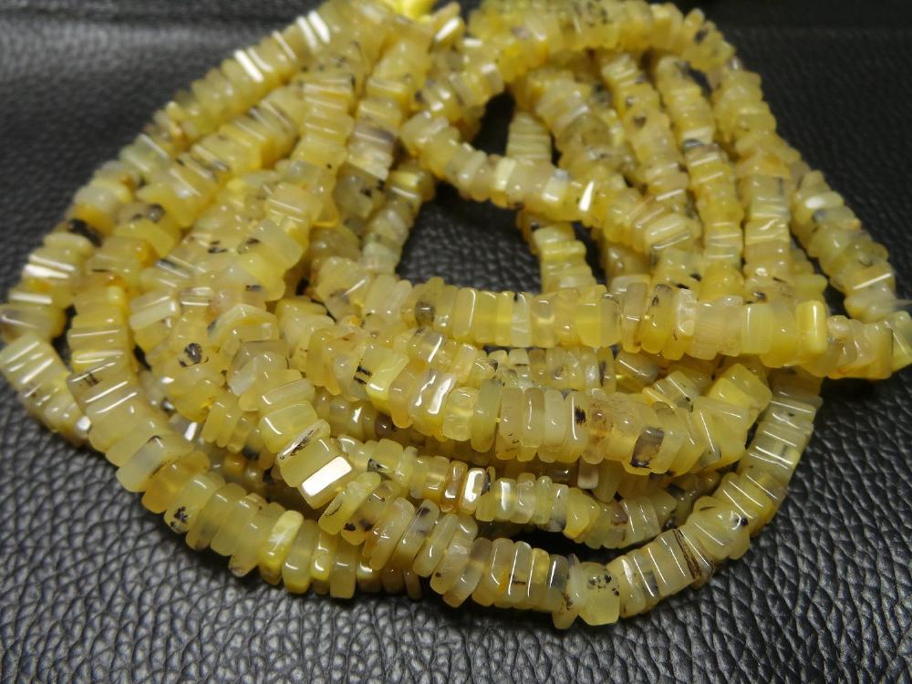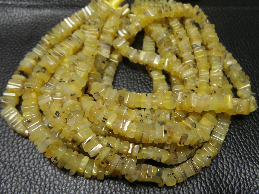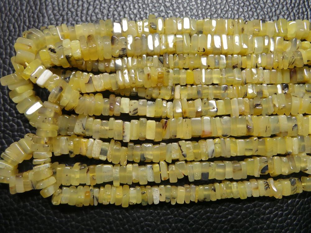 PRODUCT DESCRIPTION: Product Name: Natural Peruvian Yellow Opal, Smooth Square Heishi Cut Beads Quality: AAAAA++++ Super Top Quality