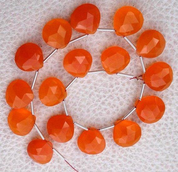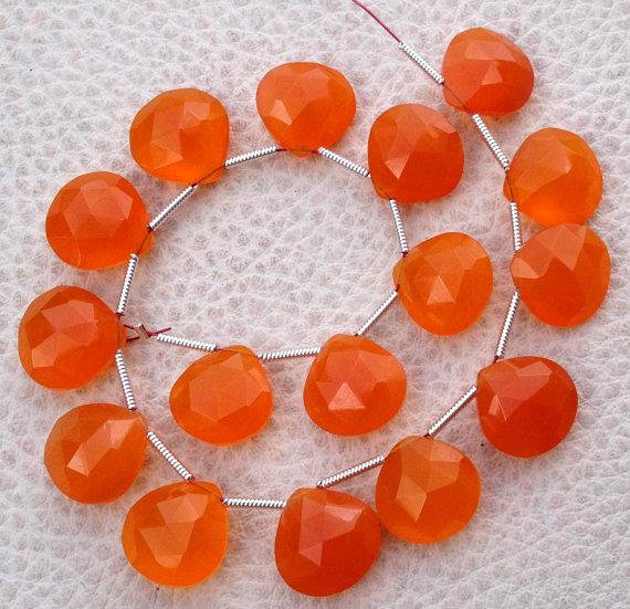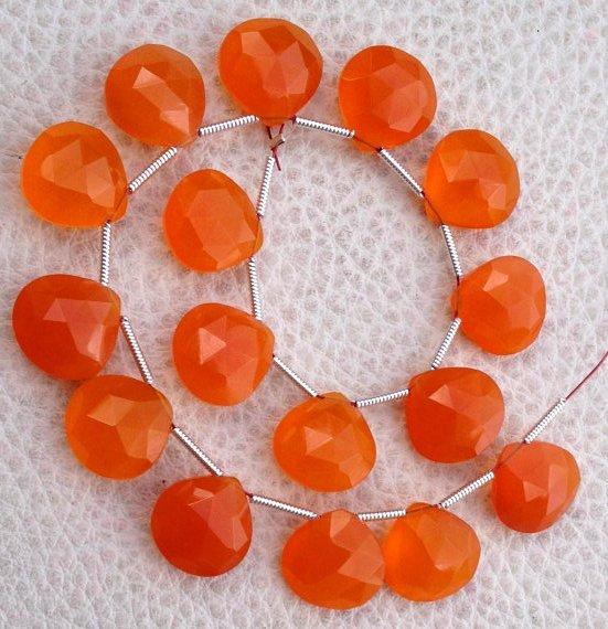» Exclusive 14x14 MM Size, High Quality, 10 Pieces, Fanta Orange Chalcedony, Faceted Heart Shape Briolettes