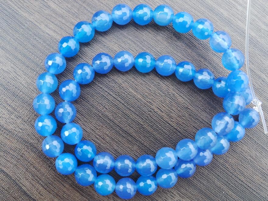 » Full 14" Strand, Gorgeous AAAAA++++ High Quality, 8 MM Size Light Neon Apatite Chalcedony, Faceted Roundel Balls