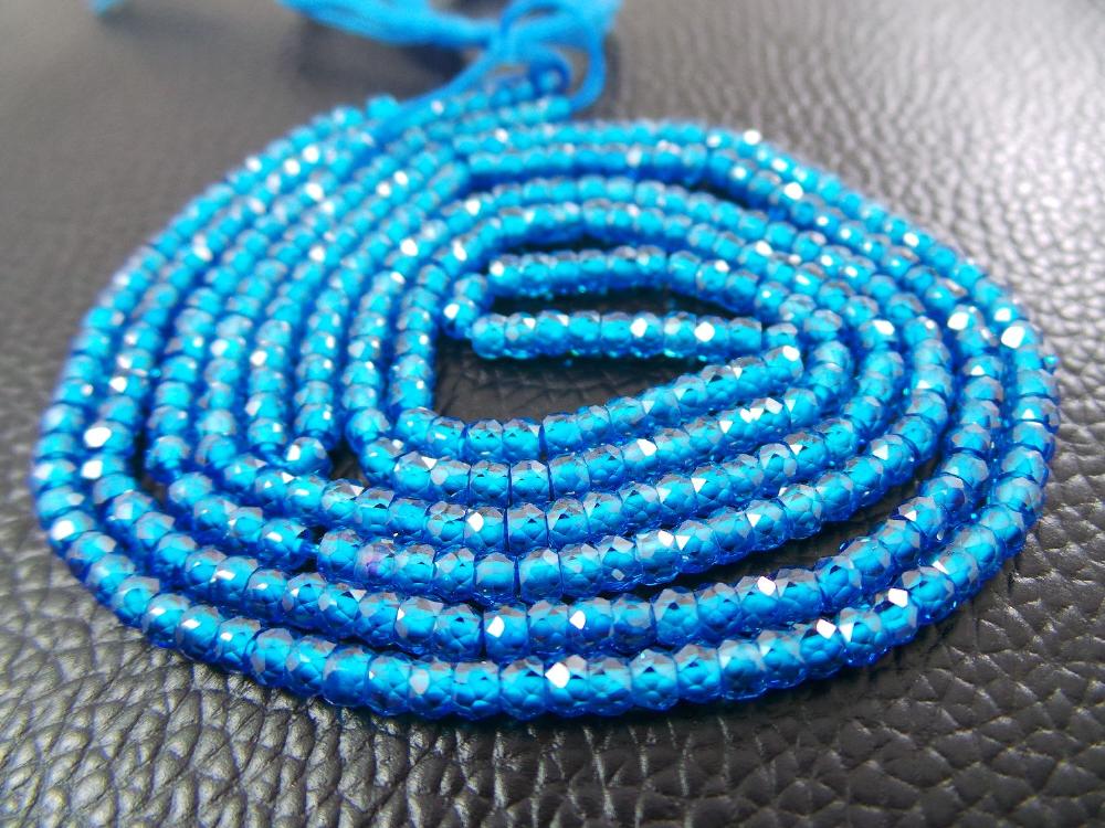 PRODUCT DESCRIPTION: Product Name: Natural Neon Blue Zircon, Faceted Roundel Beads Quality: AAAAA++++ Super Top Quality