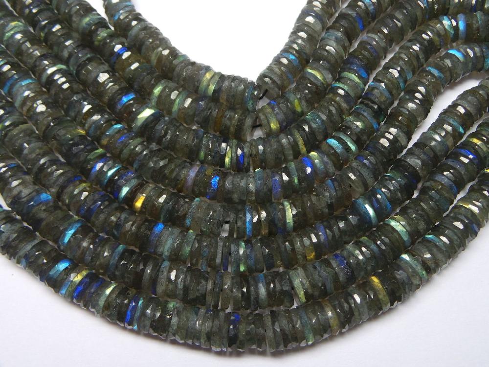 » Natural Labradorite, Faceted Heishi Round Tyre Beads, Awesome Finest Quality, Available On Wholesale Price