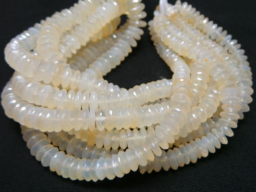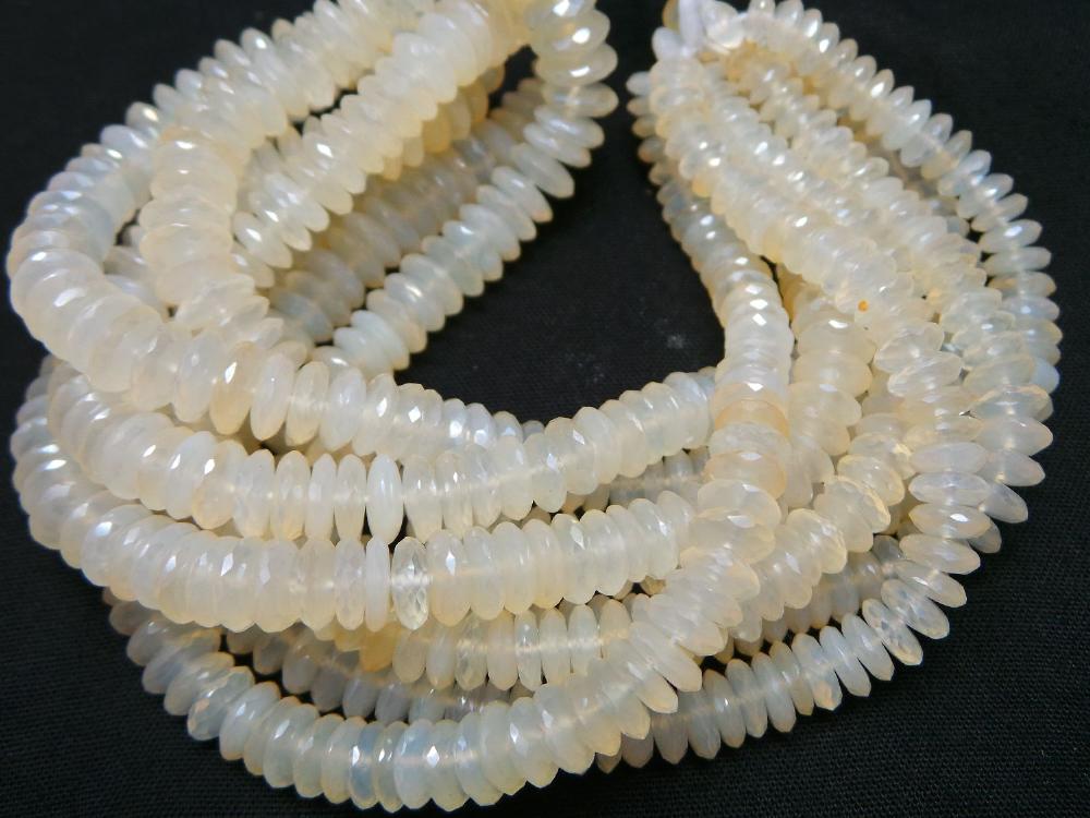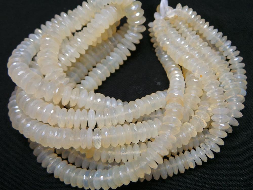 PRODUCT DESCRIPTION: Product Name: White Coated Chalcedony, Faceted German Cut Roundel Beads Quality: AAAAA++++ Super Top Quality