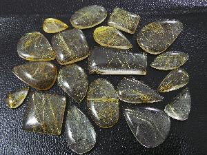 PRODUCT DESCRIPTION: Product Name: Natural Golden Rutilated Quartz, Smooth Mix Shape Cabochons Quality: AAAAA++++ Super Top Quality