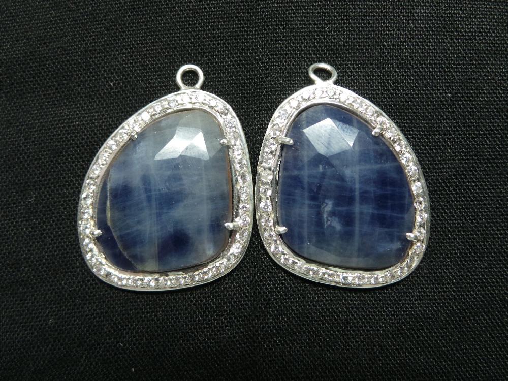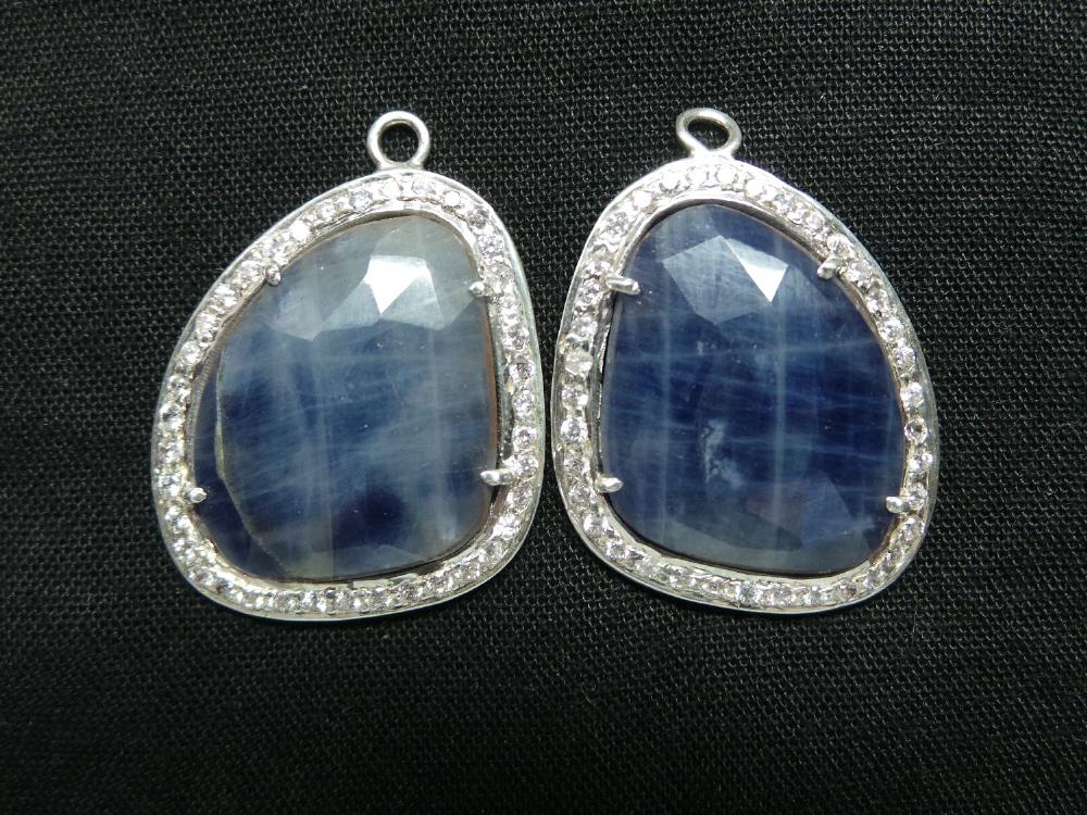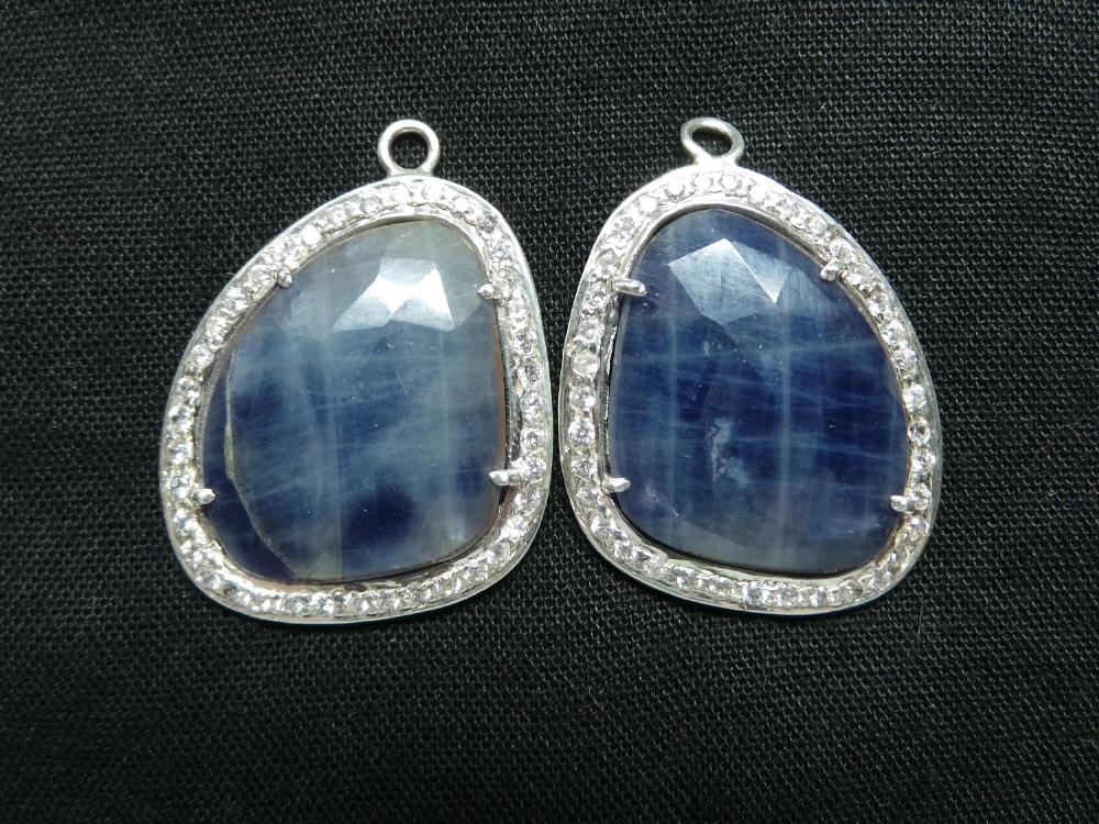 » 925 Sterling Silver Natural Blue Sapphire Connector Pendants Studded With American Diamond, Awesome Finest Quality, Available On Wholesale Price