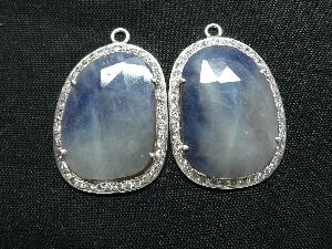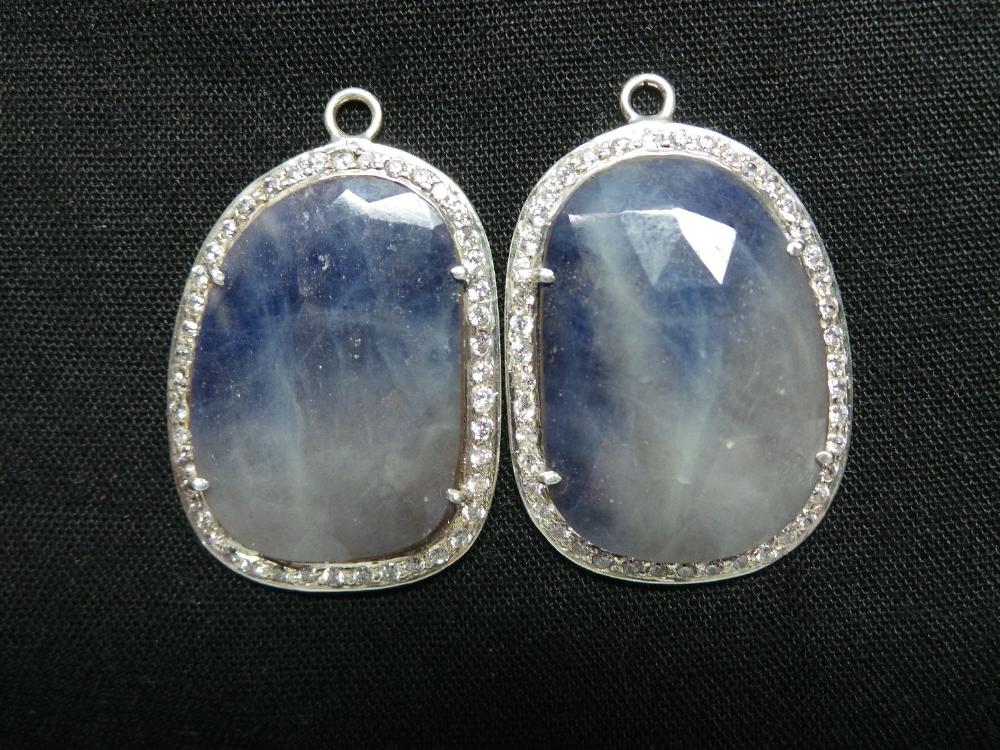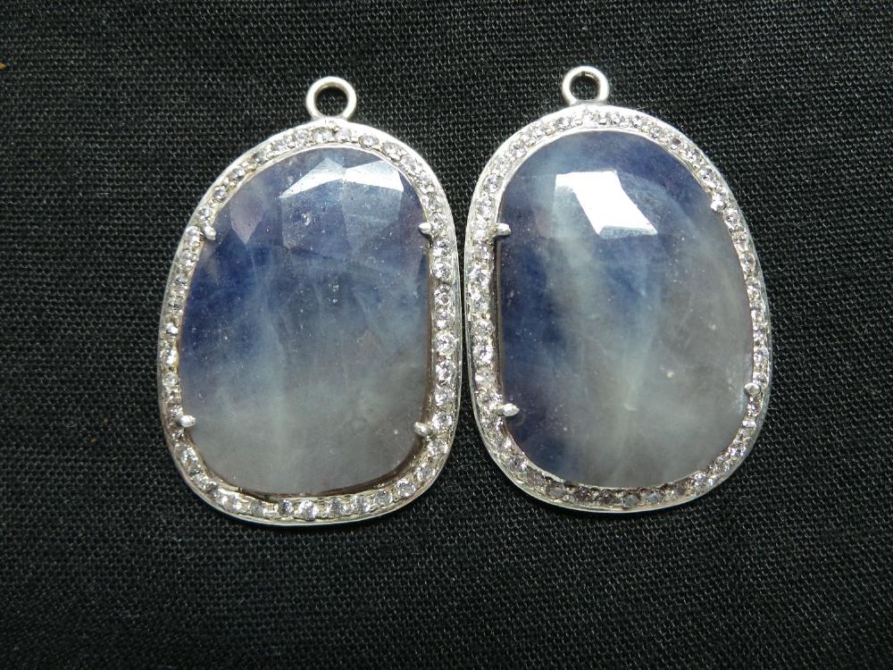 » 925 Sterling Silver Natural Blue Sapphire Connector Pendants Studded With American Diamond, Awesome Finest Quality, Available On Wholesale Price #2