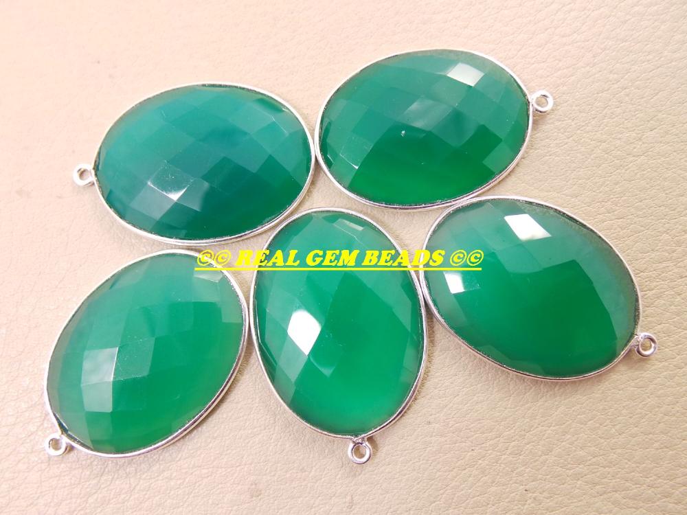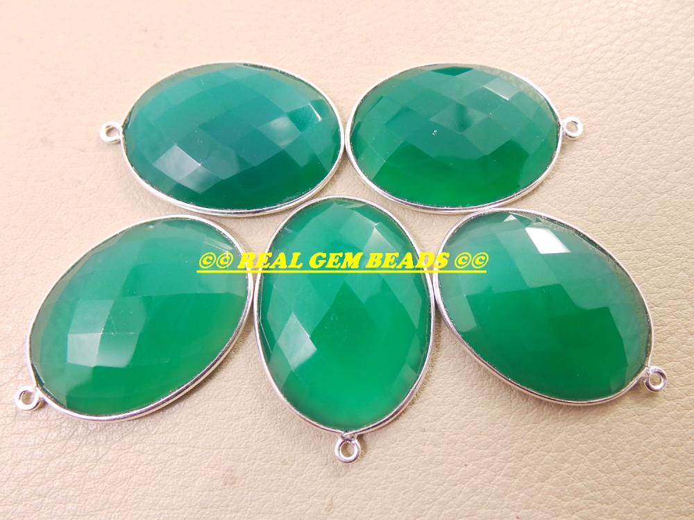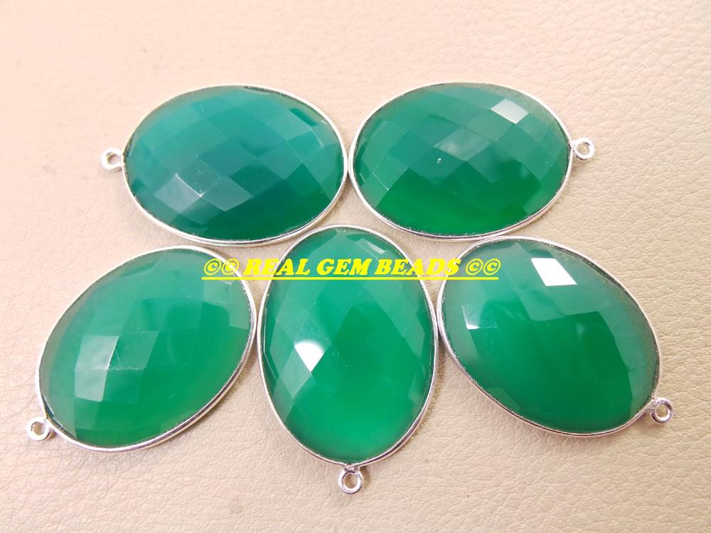 » 925 Sterling Silver, Green Onyx Chalcedony, One Side Chacker Cut Oval Shape Connectors, Awesome Finest Quality, Available On Wholesale Price