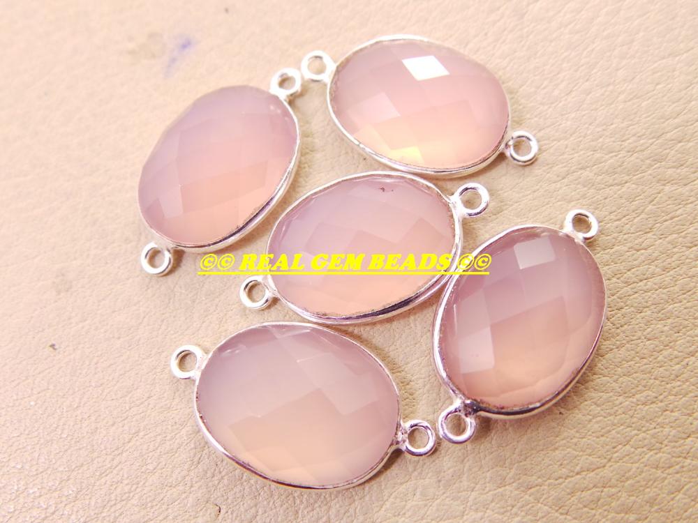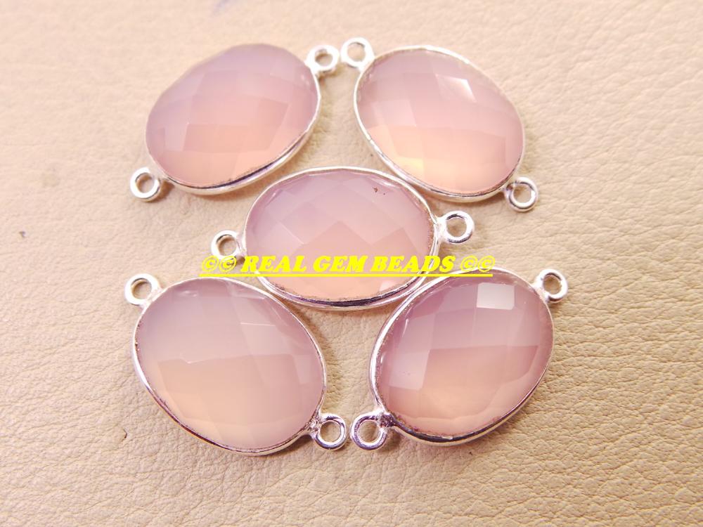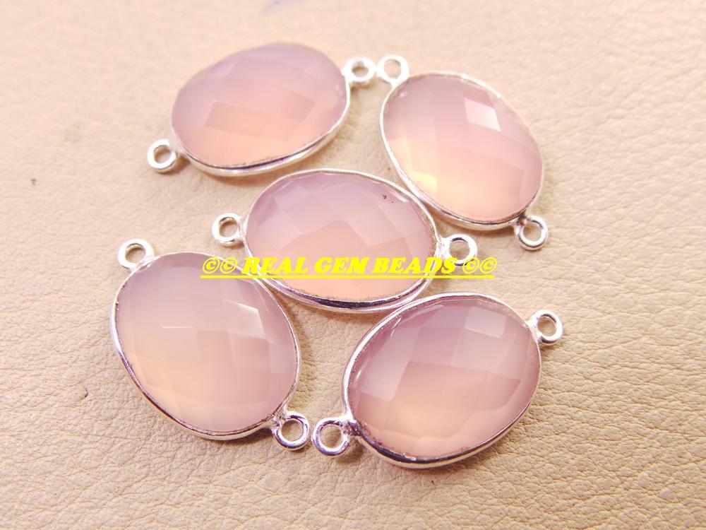 PRODUCT DESCRIPTION: Product Name: 925 Sterling Silver, Rose Quartz Chalcedony, One Side Chacker Cut Oval Shape Connectors Quality: AAAAA++++ Super Top Quality