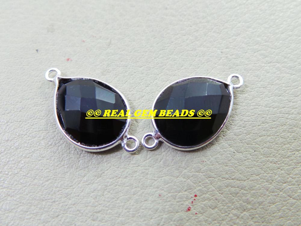 PRODUCT DESCRIPTION: Product Name: 925 Sterling Silver, Natural Black Onyx, One Side Chacker Cut Pear Shape Connectors Quality: AAAAA++++ Super Top Quality