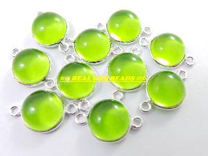 » 925 Sterling Silver, Peridot Green Quartz, Smooth Round Shape Connectors, Awesome Finest Quality, Available On Wholesale Price