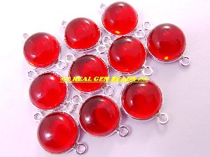 » 925 Sterling Silver, Red Garnet Quartz, Smooth Round Shape Connectors, Awesome Finest Quality, Available On Wholesale Price