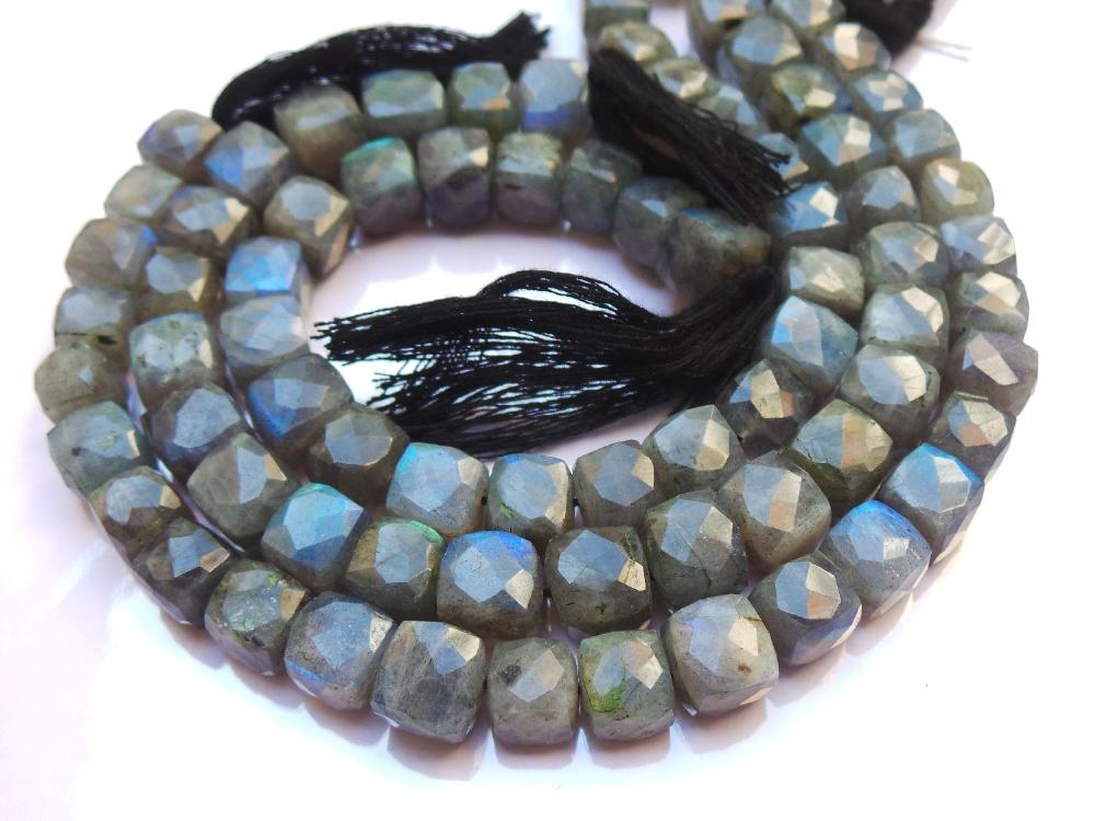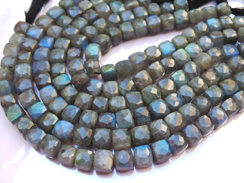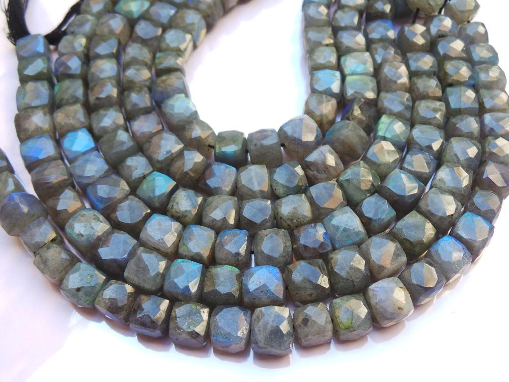 » Natural LABRADORITE Faceted Cube Box Beads, 7-8 mm Size, 8" Strand, AAA Quality, Wholesale Price, Loose Gemstone Beads