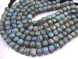 Natural Labradorite Cube Box Beads Gemstone: Labradorite Cut: Faceted Cube Box Size (Appx): 7-8 MM Strand Length: 8 Inches Long Quality: AAA Grade Finest Quality