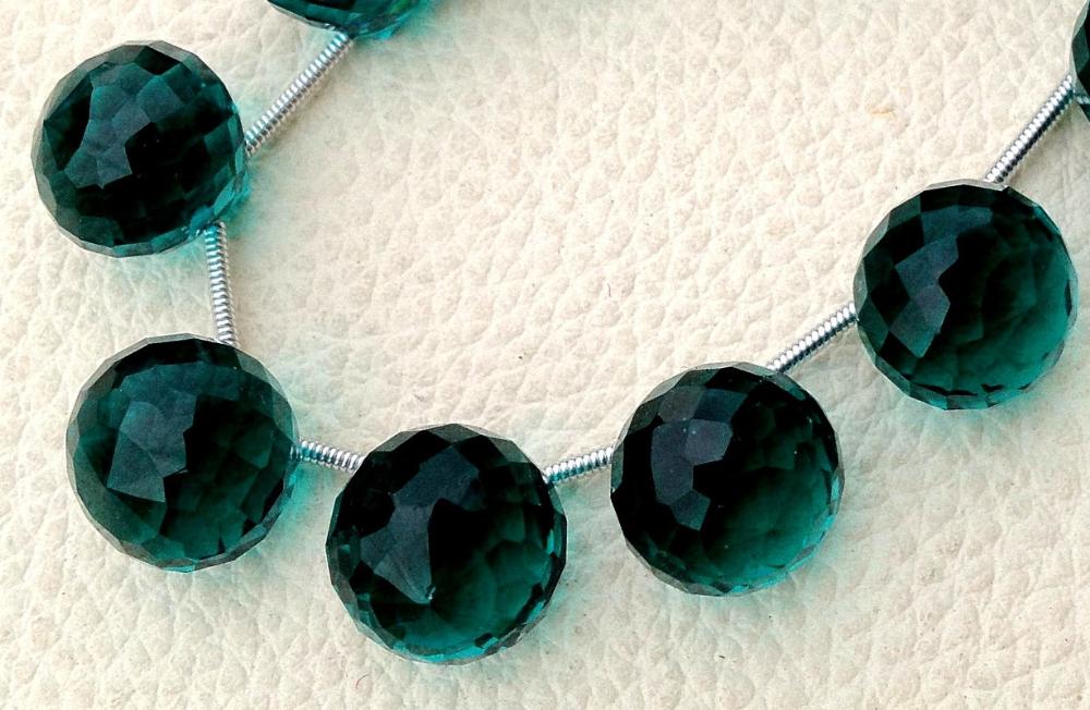 » Exclusive Amazing 10 MM Size, Gorgeous AAAAA++++ High Quality, Full 7 Inch Strands, Paraiba Green Quartz, Faceted Onion Cut Briolettes