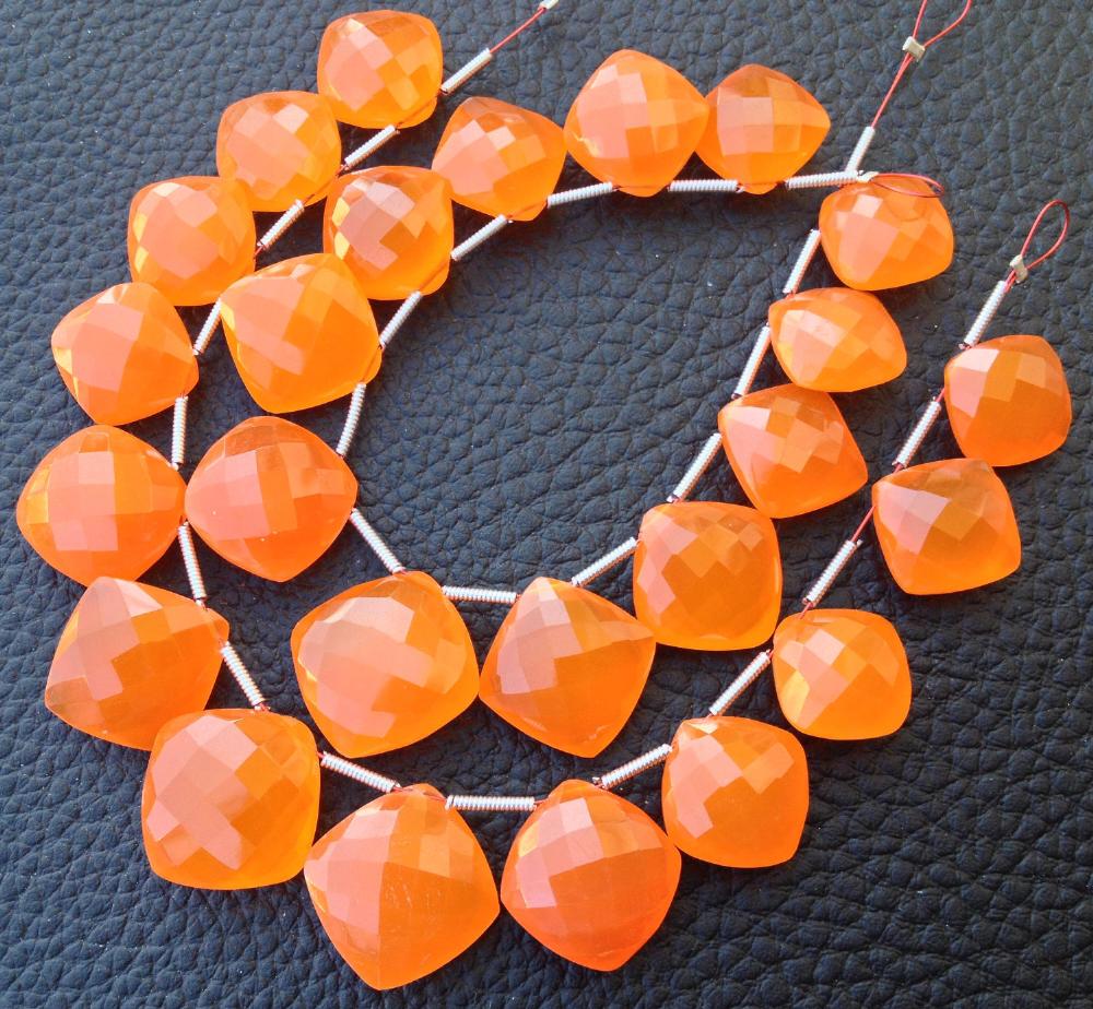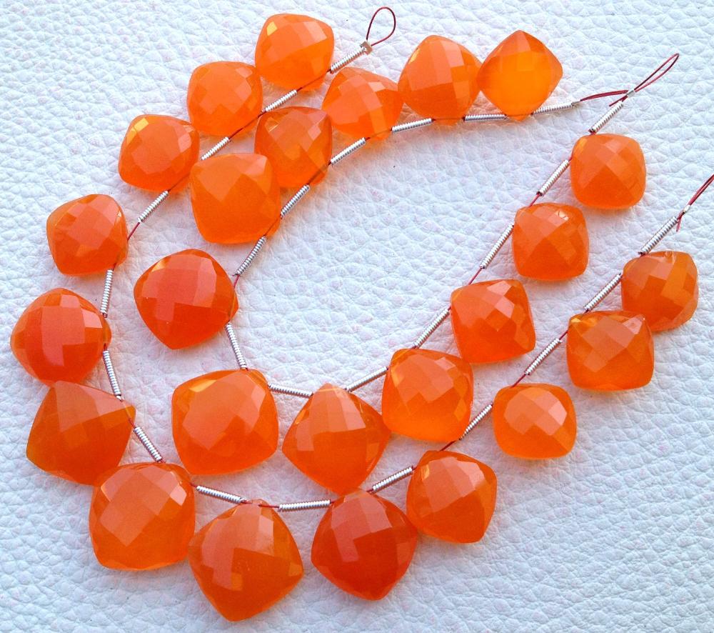 Name : FANTA ORANGE CHALCEDONY, Faceted Cushion Briolettes, 14 Pieces, 12 mm Size, Awesome Finest Quality, Wholesale Prices
