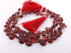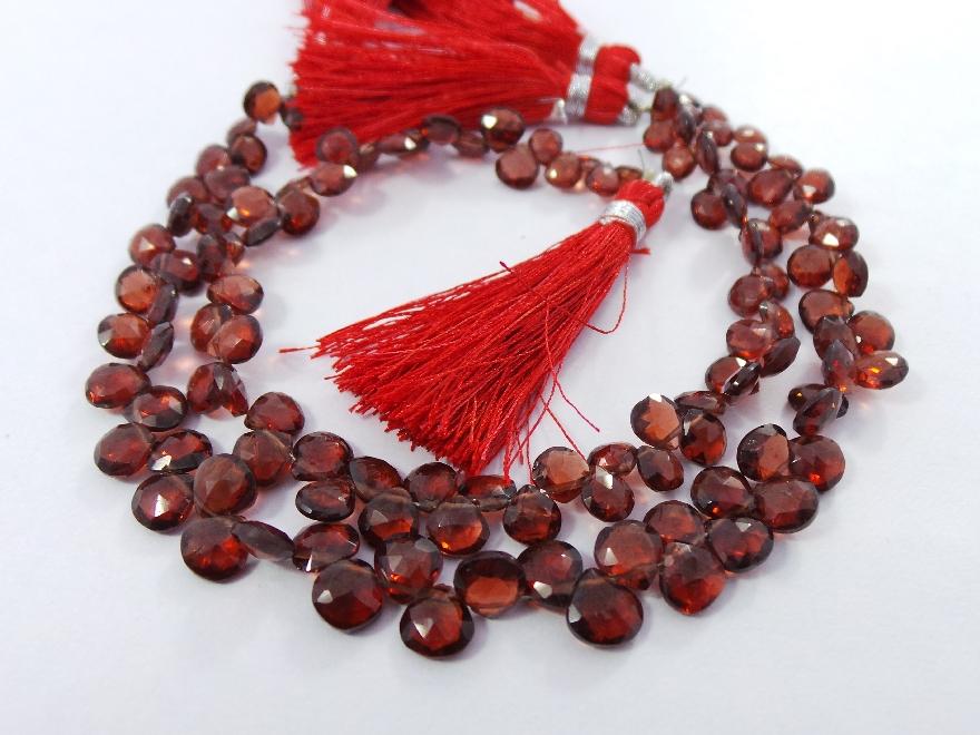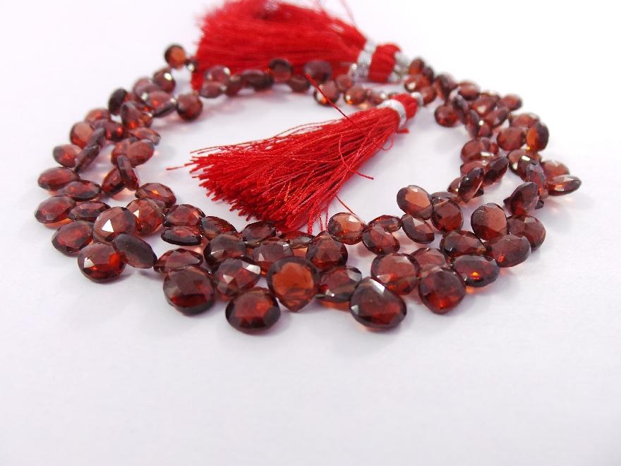 » Natural Mozambique Garnet, Faceted Heart Shape Briolettes, 5-7 MM Size, Full 8 Inches Strand, Finest Quality, Wholesale Price