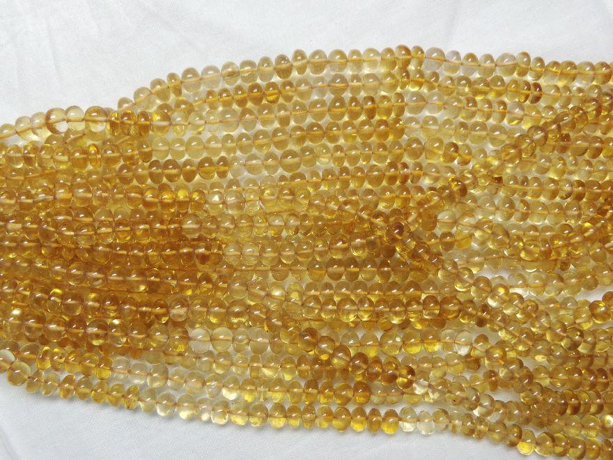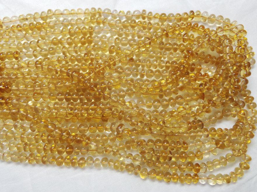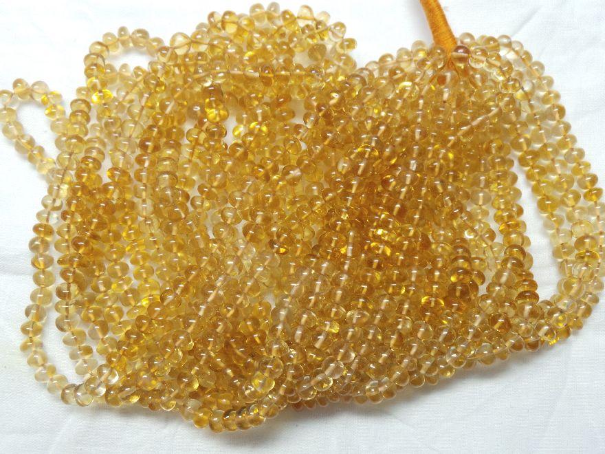 » Natural Citrine, Smooth Polished Roundel Beads, 5 MM Size, Full 16 Inches Strand, Finest Quality, Wholesale Price
