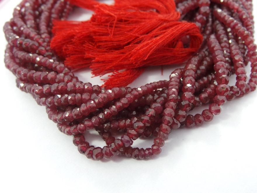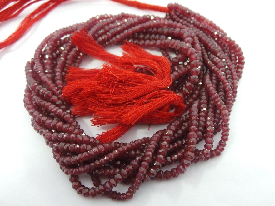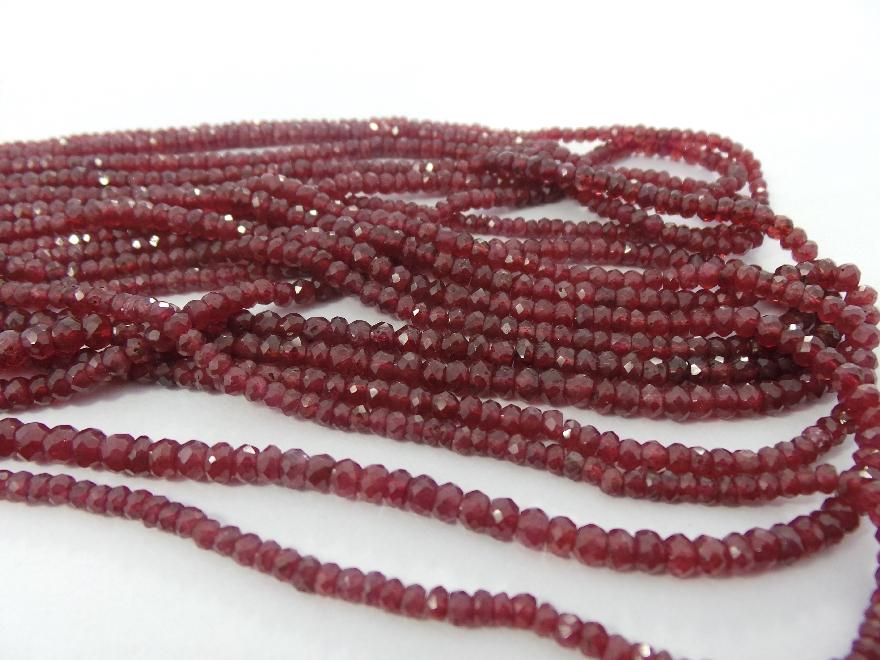 PRODUCT DESCRIPTION: Product Name: Natural Mozambique Ruby Faceted Roundel Beads Quality: AAAAA++++ Super Top Quality Size: 2.50-5 MM Price: Per Strand