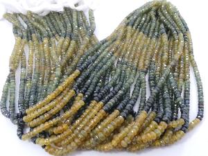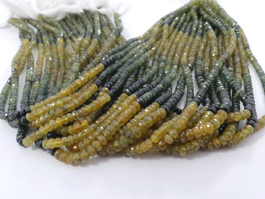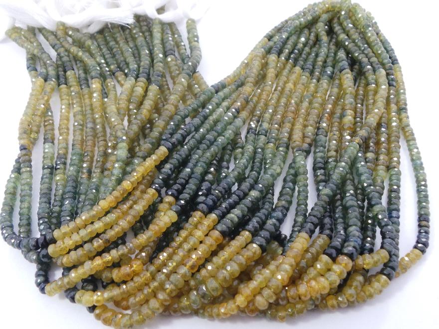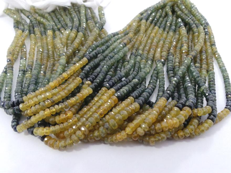 » Natural Yellow Blue Sapphire, Faceted Roundel Beads, 4.50 MM Size, Full 14 Inches Strand, Finest Quality, Wholesale Price