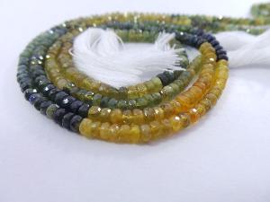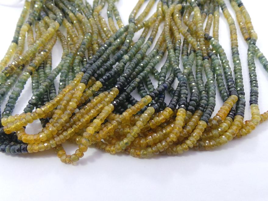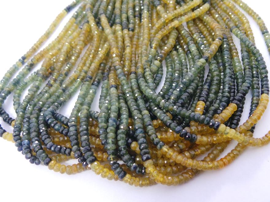 » Natural Yellow Blue Sapphire, Faceted Roundel Beads, 5 MM Size, Full 14 Inches Strand, Finest Quality, Wholesale Price