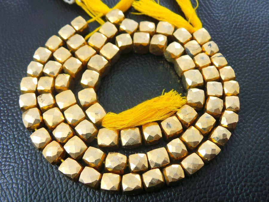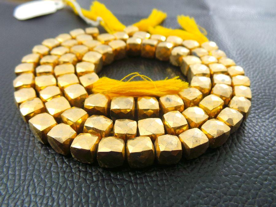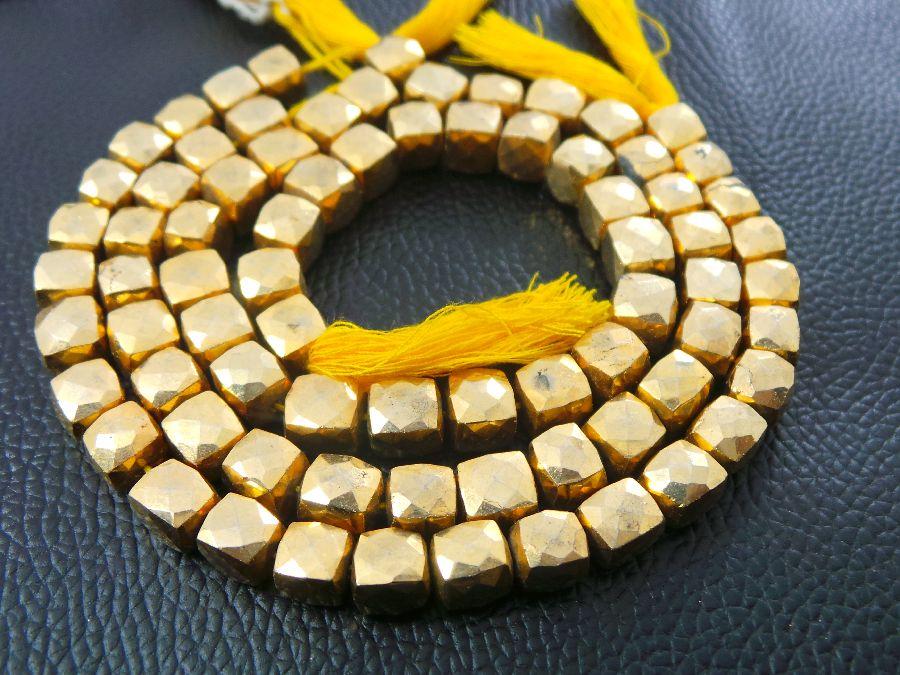 » Gold Coated Pyrite, Faceted Cube Box Beads, Awesome Finest Quality, Available on Wholesale Price