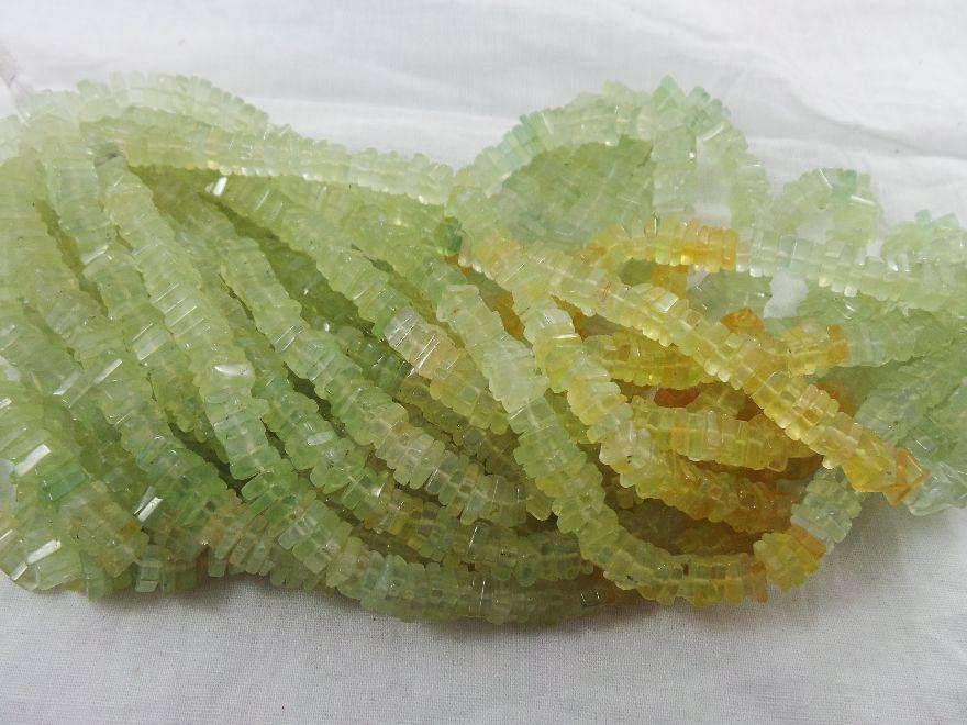 PRODUCT DESCRIPTION: Product Name: Natural Prehnite, Shaded Smooth Square Heishi Cut Beads Quality: AAAAA++++ Super Top Quality