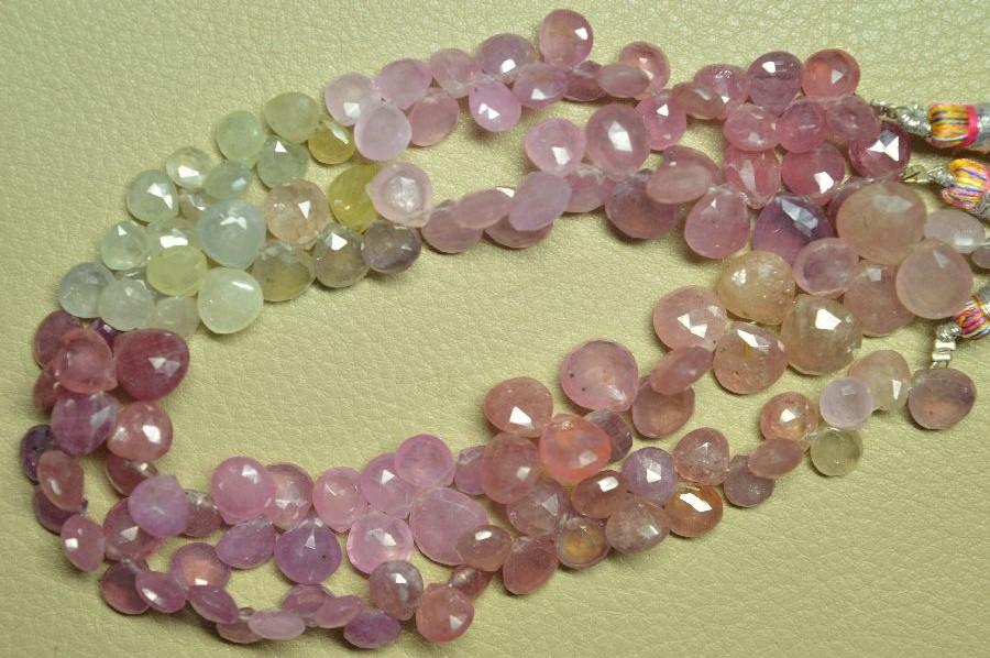 » Natural Multi Sapphire, Faceted Heart Shape Briolettes, Finest Quality, Available on Wholesale Price