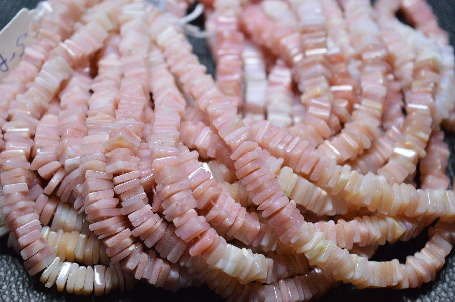 » Natural Peruvian Pink Opal, Smooth Square Heishi Cut Beads, Finest Quality, Available on Wholesale Price