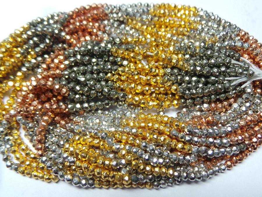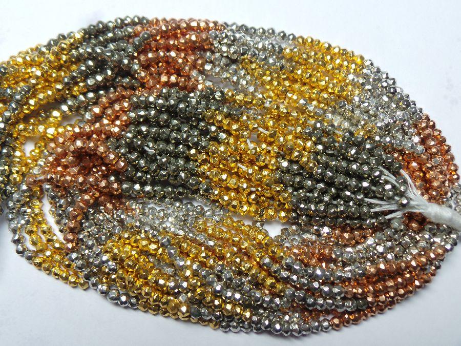 PRODUCT DESCRIPTION: Product Name: Multi Color Coated Pyrite, Faceted Roundel Beads Quality: AAAAA++++ Super Top Quality