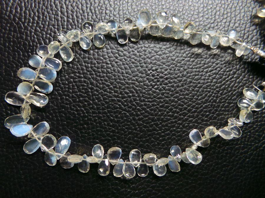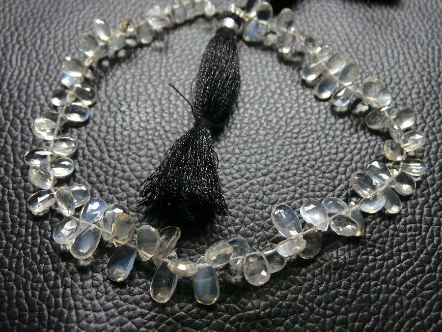 » Natural Ceylon Moonstone, Faceted Pear Briolettes, Finest Quality, Available on Wholesale Price